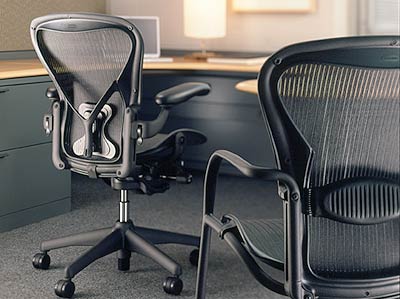 Aeron和Resolve系列家具,為高強度計算機工作者提供符合人體工學設計的支撐。