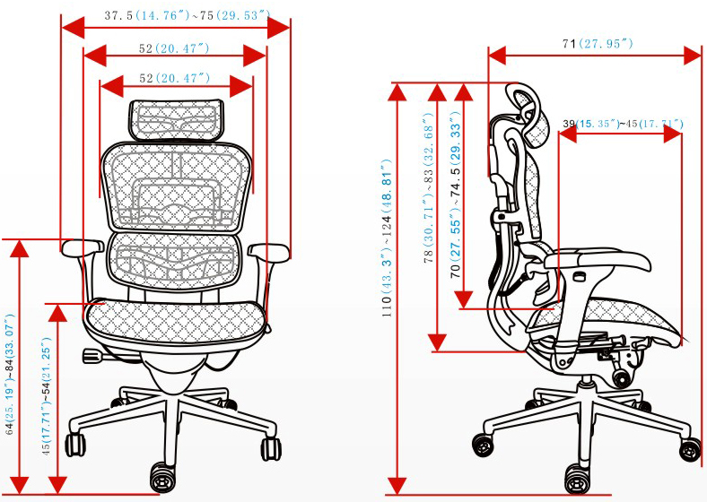 CG-SLAMErgohuman辦公椅規格圖