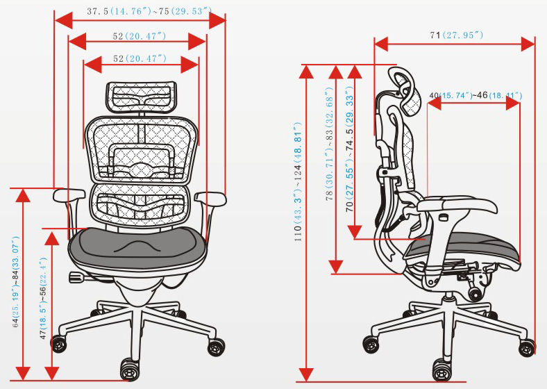 CG-SHAMErgohuman辦公椅規格圖